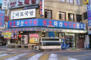 這是一間在韓國食客與日本旅客大有名氣的醬油蟹專賣店,不少日本遊客特意前來品嘗美食。元祖馬山賣的是親切平民的阿嬤料理,它的招牌菜除了醬油蟹外,還有韓國家庭料理的菜色——蒸煮鮟鱇魚。