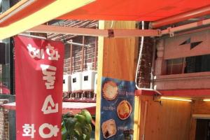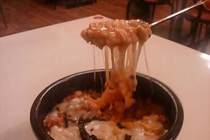 只需要4500圜 (約港幣35元),就能吃得到的牽絲芝士石鍋拌飯。由於價錢便宜,而且鄰近梨大商圈,吸引了不少當地學生前往光顧,屬於隱藏版的學生平價美食。