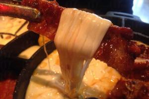 芝士迷絕不能錯過!客人戴著塑膠手套,手執排骨,捲起融化的芝士來吃。還可選擇芝士份量,喜愛芝士的朋友記得要點大量芝士!目前只有弘大店提供附有爐邊蛋的芝士排骨,一次過享受滑溜的爐邊蛋與濃厚的芝士排骨!