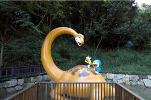 叮噹迷必去!光是館外已有很多值得拍攝的地方,有大雄的恐龍中的場景;也有搞笑的「樵夫之泉」,靚仔技安會從池中升上來;也有最常見的空地場景,一嘗坐在大水管的感受。內裡cafe還有很多可愛造型的餐點是不能錯過!