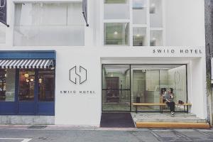 二十輪旅店是歐洲的設計,簡約的外形,加上青碧木框玻璃餐廳設計,連大堂都簡約得像一般住宅,不少人都坐在門口的長椅影相自拍,以假亂真以為去咗歐洲。