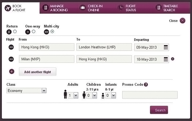 呢個優惠嘅好處,係去程同回程嘅地方可以不一(Open Jaw),只要利用官網個Multi-city功能搜尋,就可以A地方入、B地方出,除左畀你一次過玩哂2個地方外,分分鐘更平更慳!